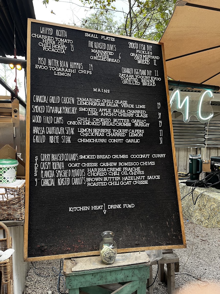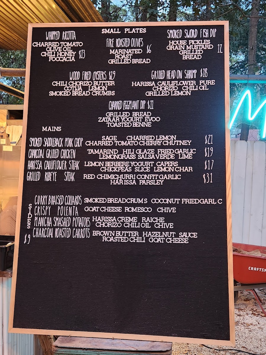 The menu shines with highlights such as the sweet potato hummus and the smoked fish dip, perfect for starters. For mains, the crowd-pleasing tomahawk pork chop and ribeye steak are often mentioned, celebrated for their exceptional char. Guests adore the outdoor setting, complete with cozy fires and stunning decor, making every meal feel like a festive gathering.